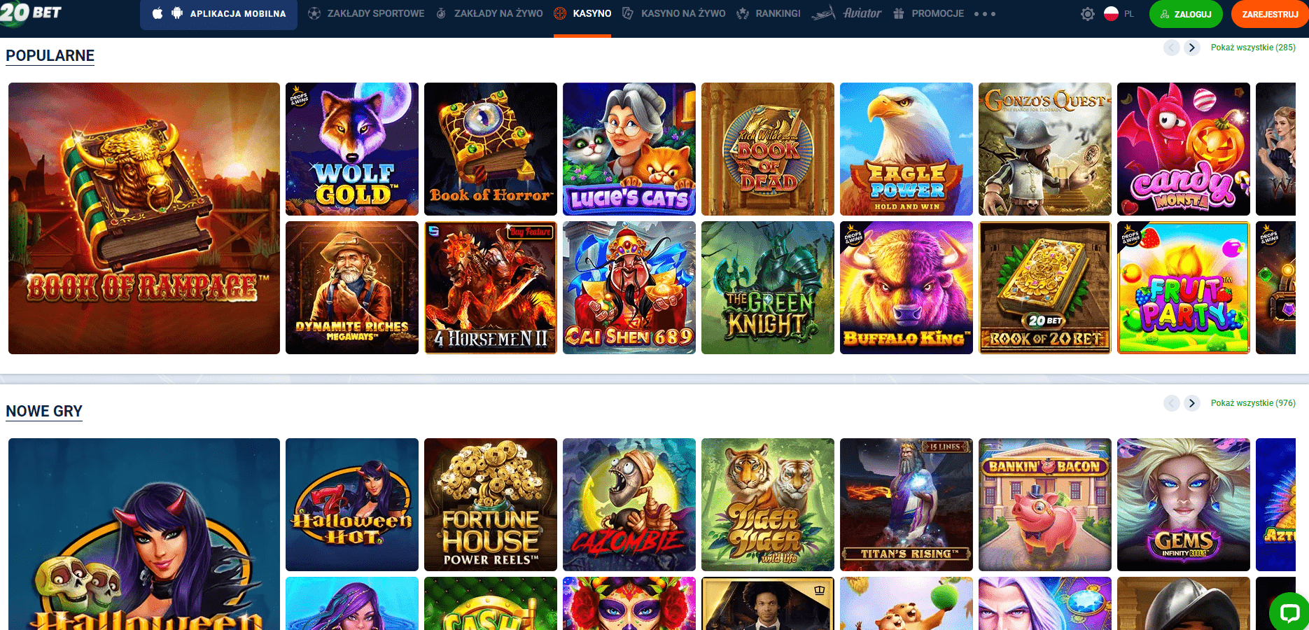 20 Bet oferuje szeroki wybór gier hazardowych, możesz więc do woli przebierać w swoich ulubionych tytułach. Szczególnie rozbudowanym działem są w 20 Bet sloty, ale nic w tym dziwnego, w końcu gry te biją rekordy popularności na całym świecie. Kategorie, jakie znajdziesz w tym kasynie internetowym to: