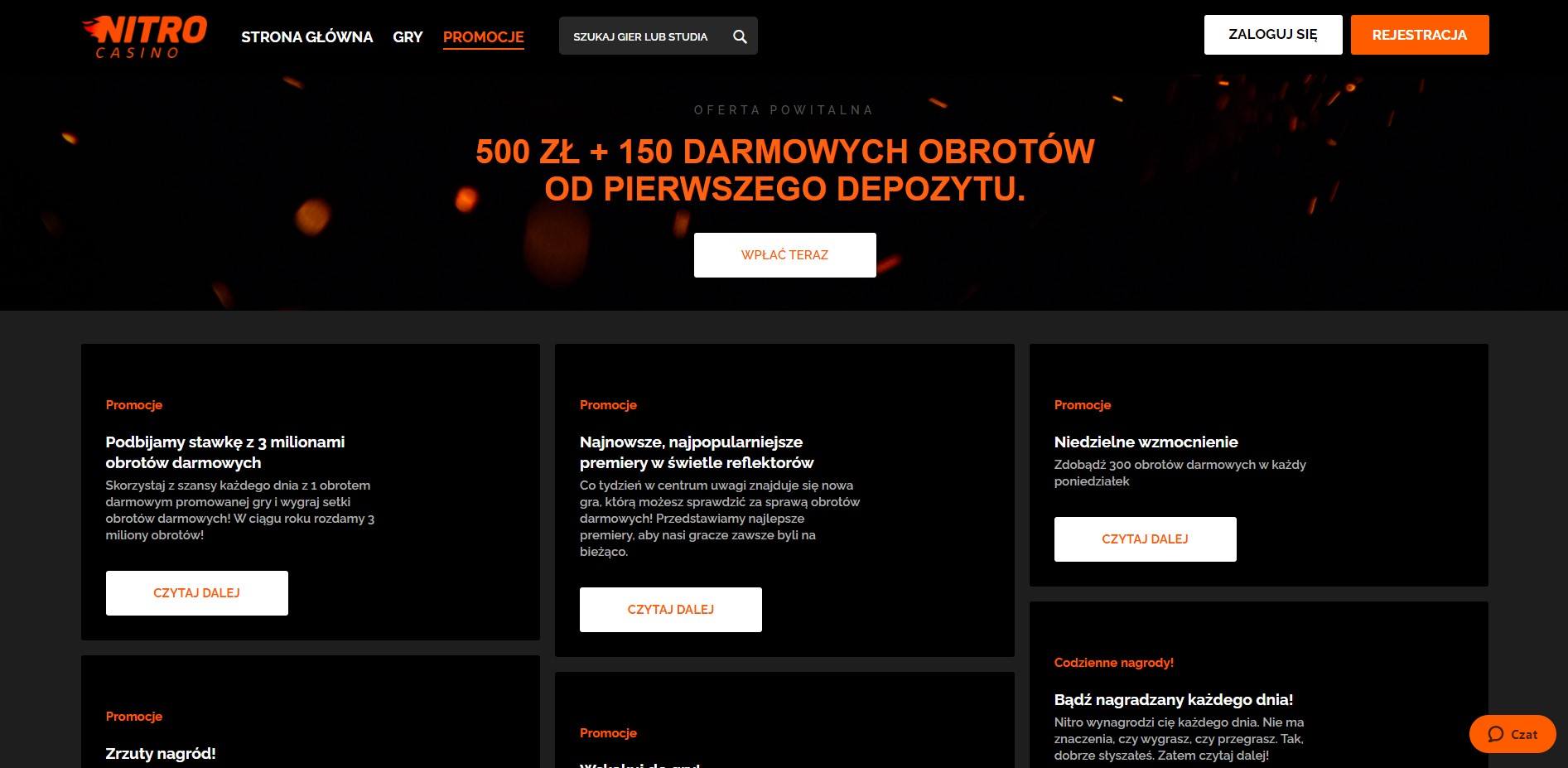 Jeśli ktoś szuka kompletnego serwisu, który zaoferuje mu wszystko na najwyższym poziomie, to Nitro będzie odpowiednim wyborem. W tym kasynie można bawić się całymi miesiącami – bez potrzeby przenoszenia się na inne serwisy hazardowe.