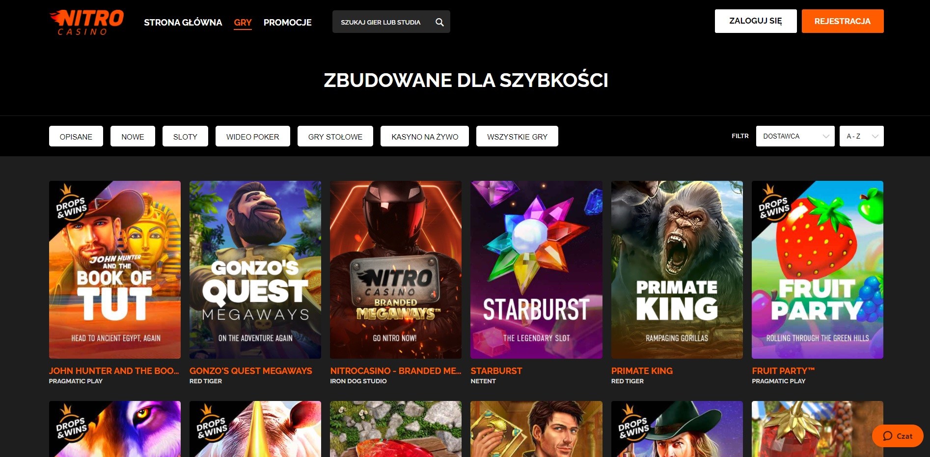 Najpopularniejsze są oczywiście automaty do gier, wśród których można wyróżnić całą masę interesujących pozycji i ogólnoświatowych hitów. Można bawić się między innymi przy takich grach jak: Wolf Gold, Gonzo’s Quest Megaways, Starburst, czy Book of Dead. To maszyny, które cieszą się ogromnym poważaniem graczy i pomimo upływu lat, nadal znajdują się na samym szczycie. Warto zaznaczyć, że wszystkie pozycje są także dostępne w wersji Nitro za darmo. Dzięki temu można je uruchamiać w dowolnej chwili i to bez wymogu logowania. To doskonały sposób na dogłębne zapoznanie się z rozgrywką, zanim podejmie się decyzję o przejściu do gry na poważnie.